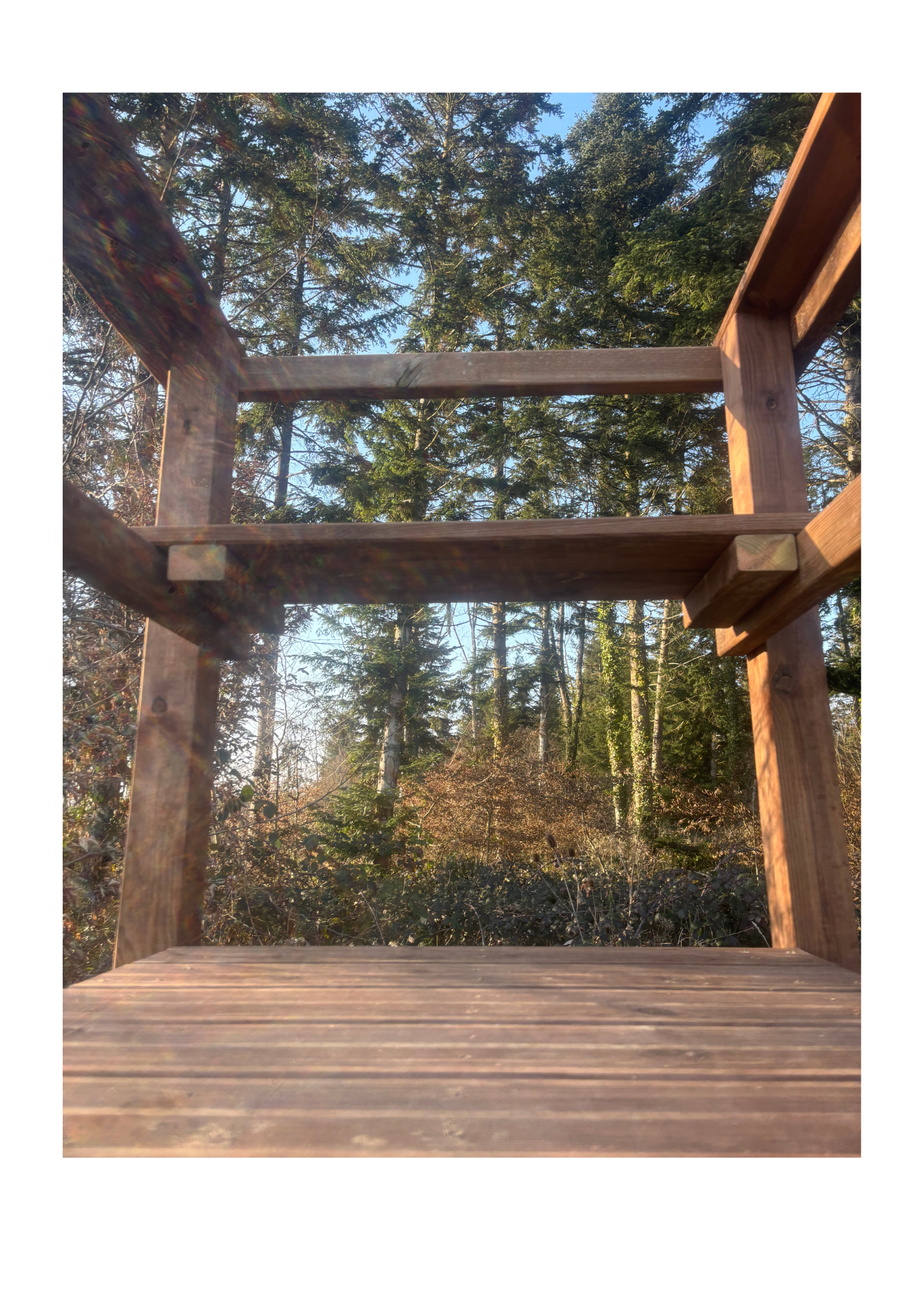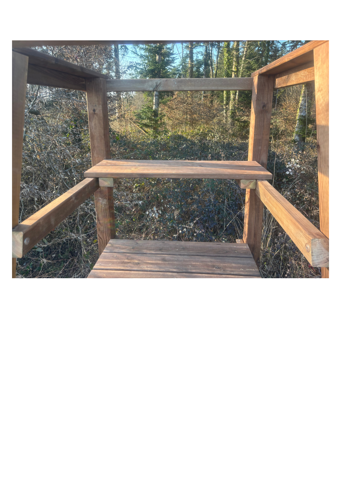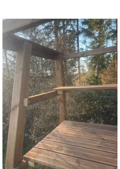 Chaque Mirador Cha'perché est vendu entièrement monté, afin de garantir la solidité de l'assemblage et la fiabilité de la structure. Les postes sont à venir récupérer directement à L'Atelier en Haute-Saône (Denèvre).
