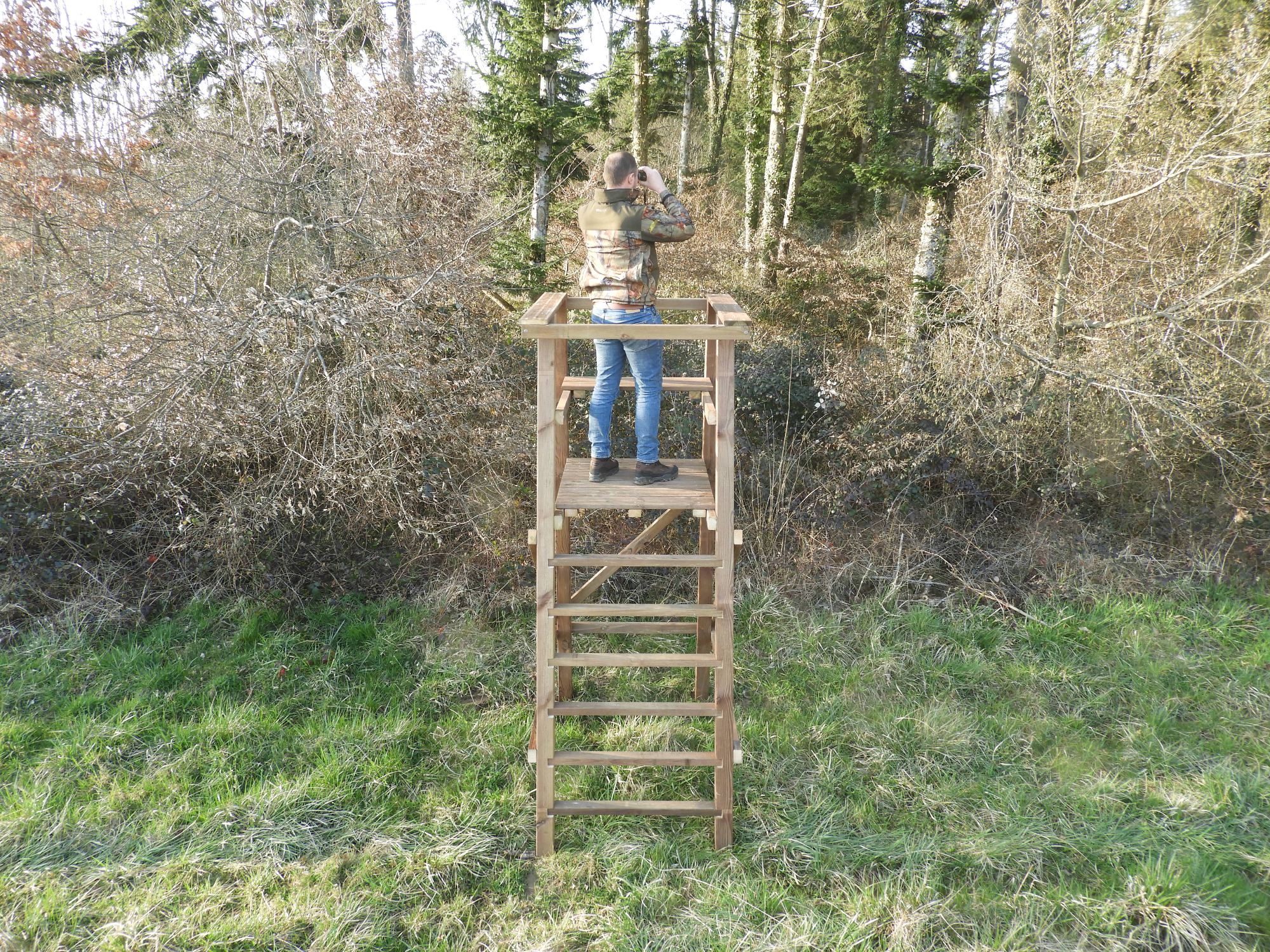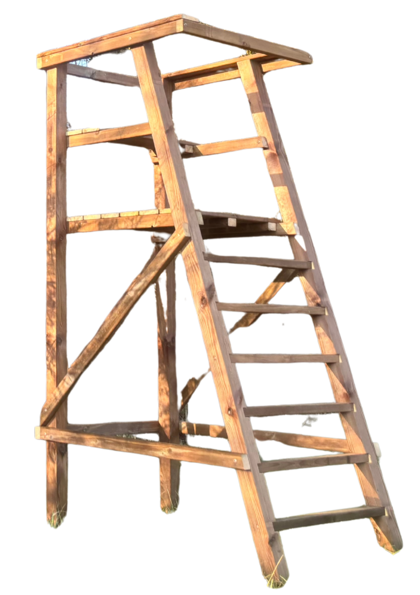 Imaginé par un chasseur et fabriqué par un menuisier, il répond aux exigences réelles de l’affût : stabilité, discrétion et durabilité. Chaque structure est réalisée artisanalement en Franche-Comté avec des matériaux sélectionnés pour leur résistance et des sections dimensionnées pour durer.