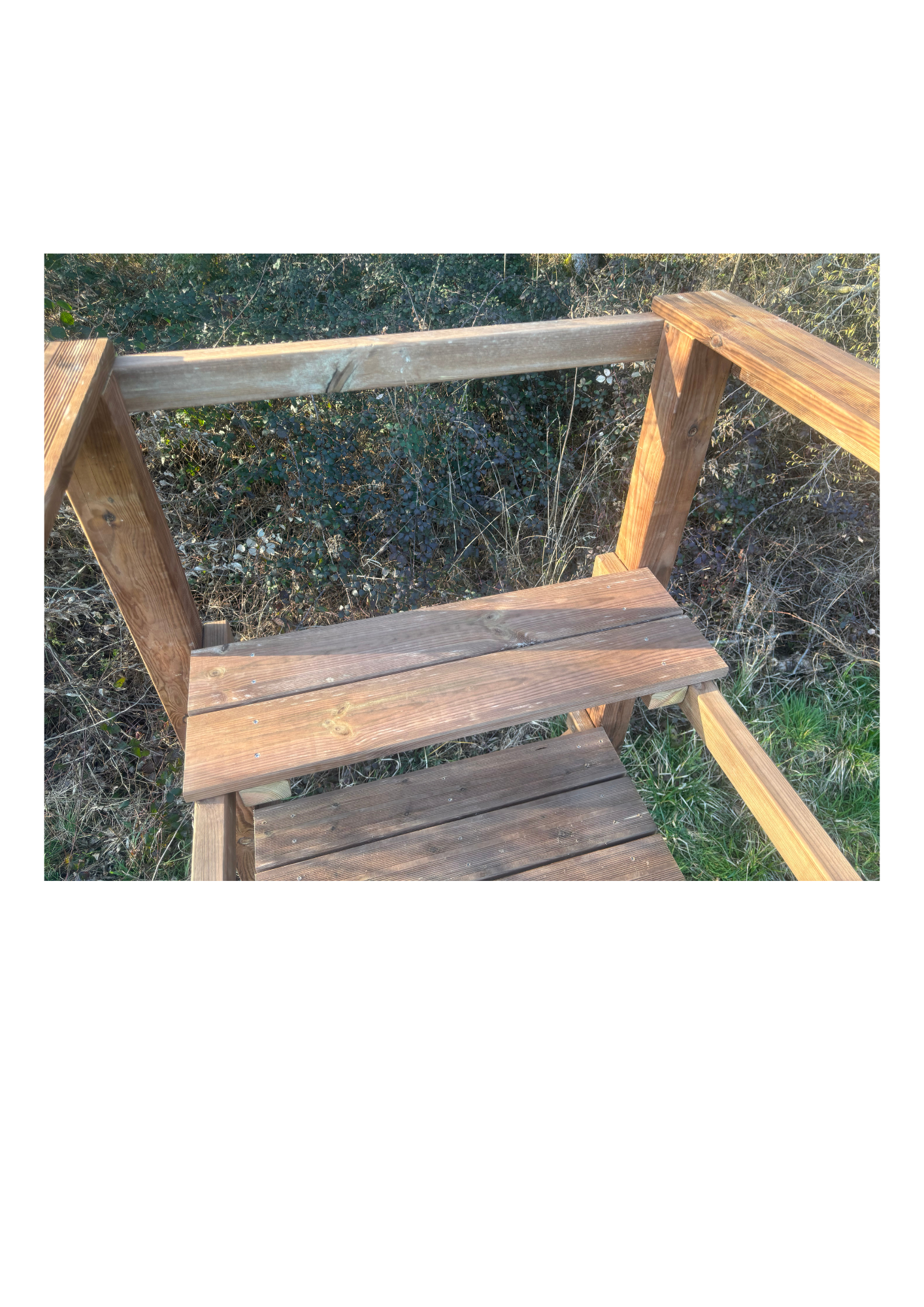 Structure : Bois autoclave classe 4 conçu pour résister aux intempéries et au contact prolongé avec le sol. Structure renforcée de 90 mm. Conception : Visseries inox et acier galvanisé à chaud.